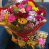 Lindo mix de flores do campo compondo este lindo arranjo. Alegre e colorido para alegrar o dia de alguém especial, acompanhado de uma caixa de chocolate ferrero Rouche.