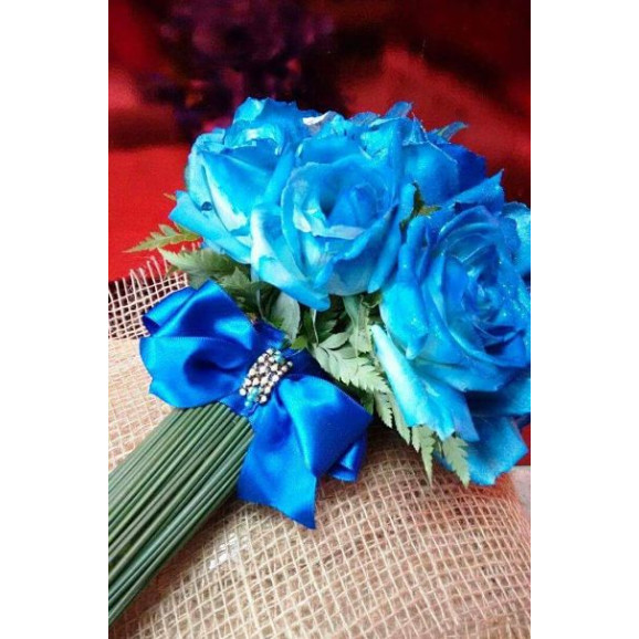 Lindo buquê, composto por rosas, mosquitinho, fino acabamento em cetim e pedrarias.