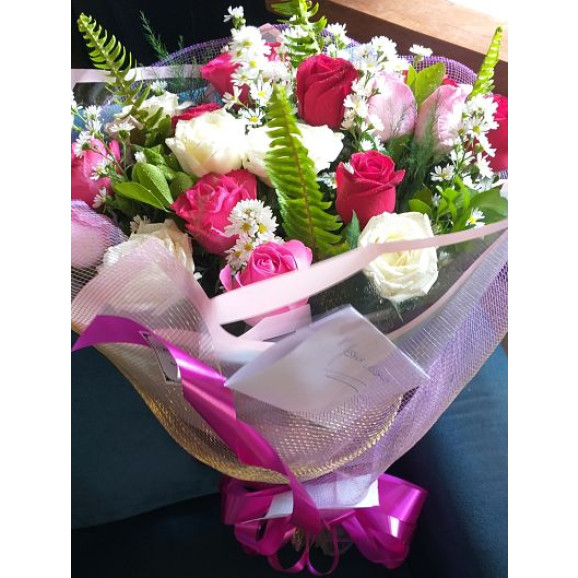 Lindo e requintado esse buquê é composto por 12 rosas em uma perfeita combinação de cores, pink e cor de rosa, com uma linda embalagem, ideal para presentear e agradar. As rosas cor de rosa são atribuídos significados como amor, delicadeza, elegância e carinho, por isso, são indicadas para expressar admiração, simpatia, agradecimento e amor poético.Ideais para presentear preferencialmente as mulheres em datas comemorativas, como aniversário, presente para namorada, aniversário de namoro, dias das mães, aniversário 15 anos e outros. Além disso, são indicadas simplesmente para surpreender aquela pessoa especial que você tanto quer conquistar. Outra sugestão que se aplica a esta rosa são as decorações de festa, principalmente de uma debutante, ao qual se espera muita delicadeza nesse momento de transição da menina mulher