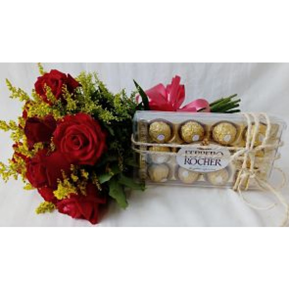 Lindo bouquet composto por 8 rosas e 01 caixa de bombom Ferrero Rocher com 12 un. A tonalidade avermelhada representando fortemente paixão, amor e desejo, também representa devoção e respeito pela pessoa amada, por tal razão, é sempre muito utilizada em datas comemorativas, com toda certeza podemos dizer que é a rosa vermelha é a tradução em flor da frase “Eu te amo”. É como se a natureza nos ajudasse a tentar demonstrar ou representar algo tão intenso e ardente, que a força da paixão.