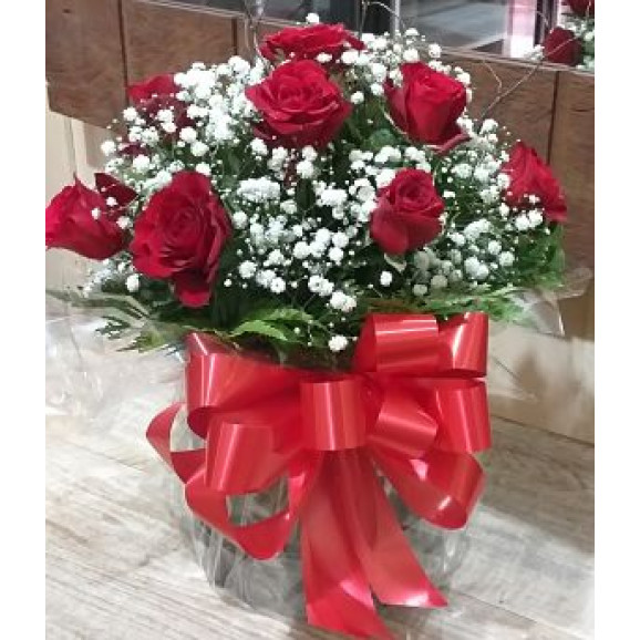Arranjo confeccionado em uma lida caixa decorada com 12 rosas vermelhas, mosquitinho e folhagens. A tonalidade avermelhada representando fortemente paixão, amor e desejo, também representa devoção e respeito pela pessoa amada, por tal razão, é sempre muito utilizada em datas comemorativas, ou qualquer ocasião.
