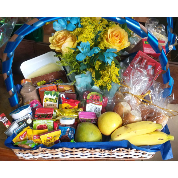 Lindo presente para aquela pessoa especial, uma cesta de café da manhã com caneca, um mimo para mãe, pai, namorado. A cesta contém: 02 Saches biscoitos pit stop 27g 01 Achocolatado 200 ml 01 Sache de Biscoito Integral 01 Suco 200 ml 01 Sache pão mel 01 Saches Biscoito Maisena 02 Torrada Bauduco 02 saches Biscoitos Leite/chocolate 01 Torrone 01 Sache Biscoito Banana/canela 01 Sache Biscoito Leite 02 saches geléia 10 gr 01 Sache Biscoito Coco 01 sache margarina 10 gr 01 sache creme 10 gr 01 sache chá 01 sache café 01 Sache Biscoito salgado cracker 02 saches açúcar 02 saches adoçante 04 mini pães 01 bolo casa suiça 04 frutas da época 01 iogurte 01 bandeja de presento 01 bandeja de mussarela 01 cx de bombom 01 choco milk 01 arranjo rosas pequeno em uma linda embalagem, 01 cesta de vime, 01 saco para presente, 01 laço.