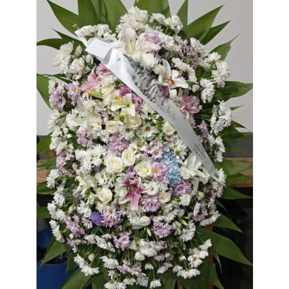 Acompanha pedestal para a colocação do arranjo e faixa de homenagem.